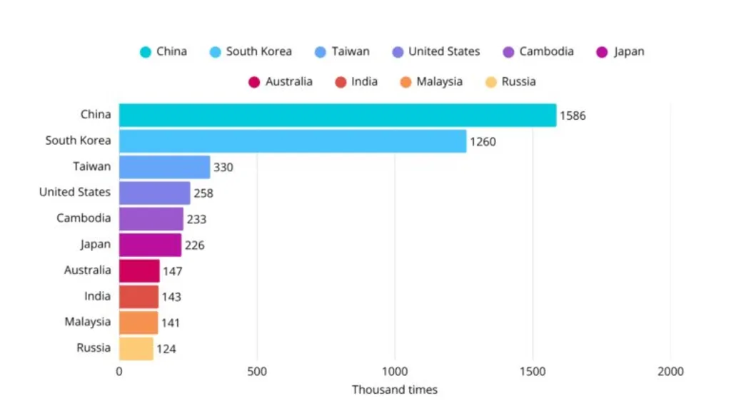 In the second place is South Korea, with 1.26 million arrivals. Together, these two markets accounted for 47% of all international arrivals to Vietnam in Q1 2025.
